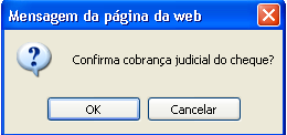 1 Filtrar: O usuário deve clicar sobre esse ícone para fazer a cobrança do cheque, ao clicar sobre o ícone ira aparecer a seguinte mensagem: