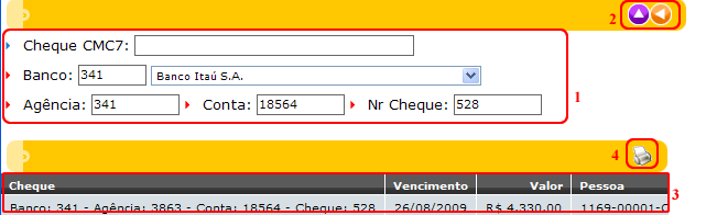 A tela de Cheques Pré-Datados - Seis elementos principais que executam funções distintas, conforme seguem: