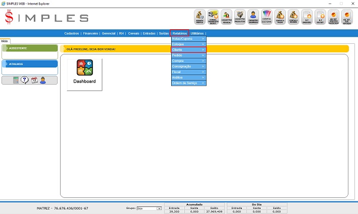 Para acessar este relatório é preciso ir ao Menu “ Relatórios - Cliente"
