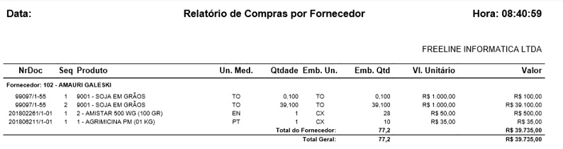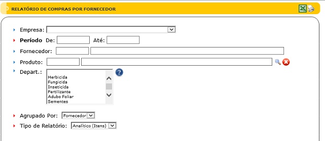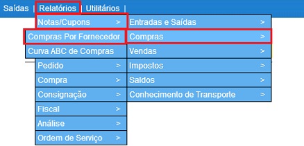 Para acessar este relatório é preciso ir ao Menu “ Relatórios - Notas/Cupons - Compras - Compras Por Fornecedor”.