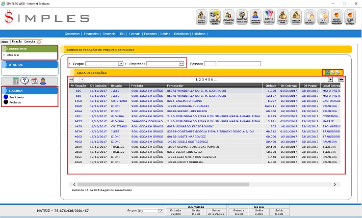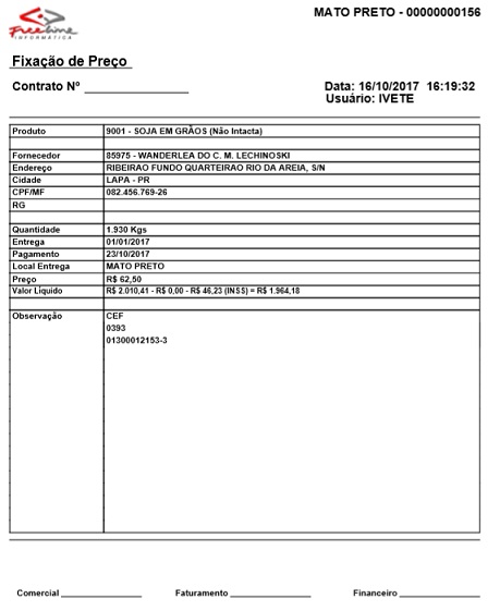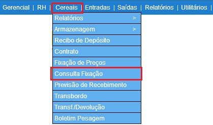 Para acessar, use o Menu “Cereais - Consulta de Fixação"