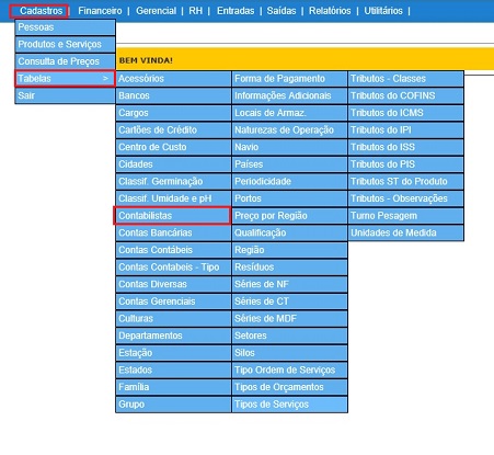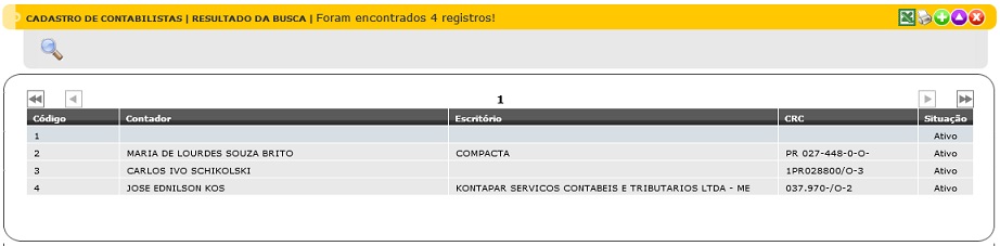 3. Grade de Contabilistas: Mostra todos os Contabilistas conforme os filtros descritos anteriormente.