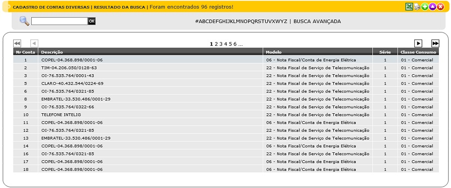 3. Busca Avançada: Permite fazer uma busca avançada de Contas Diversas com base em todos os campos da tabela.