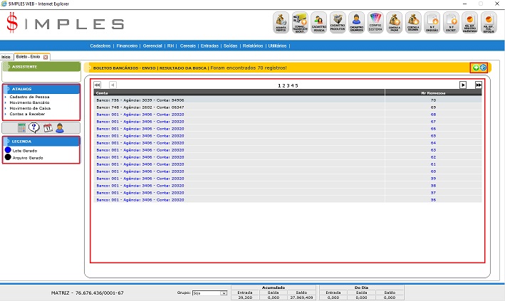 3. Grade de Boletos: Mostra todos os Boletos Bancários conforme os filtros descritos anteriormente.