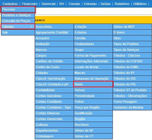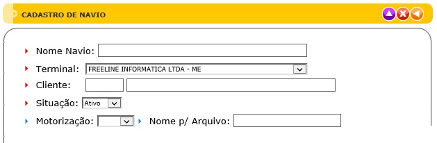 A tela do Cadastro de Navio possui dois elementos principais que executam funções distintas, conforme seguem: