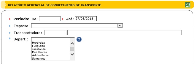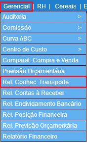 Para acessar, use o Menu “Gerencial - Relatório Conhecimento de Transporte ”.