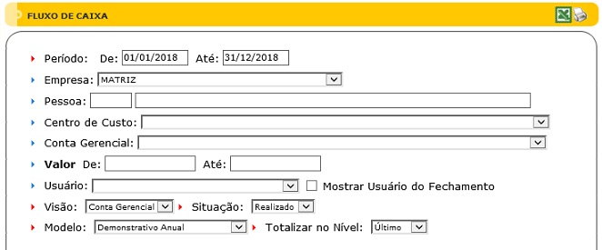 Esse relatório terá a possibilidade de ser impresso clicando em “Gerar Relatório”, ou gerar um arquivo de Excel, clicando em "Gerar Arquivo Excel".