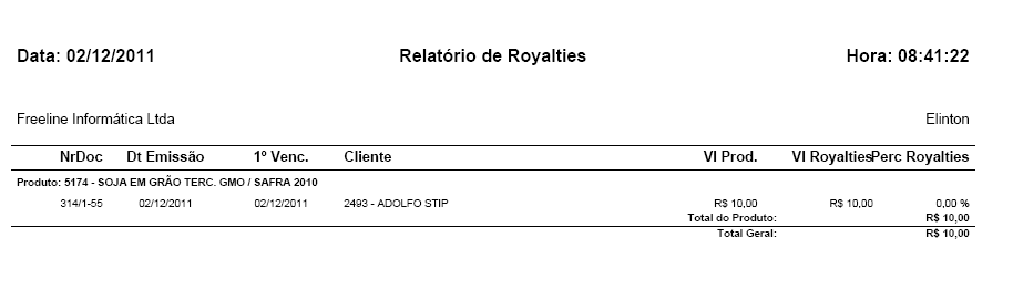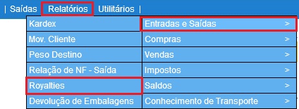 Para acessar este relatório é preciso ir ao Menu “ Relatórios-Notas-Royalties”.