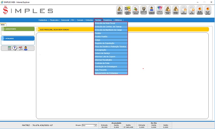 O menu Saídas agrega todos os cadastros referentes às documentos de saída.