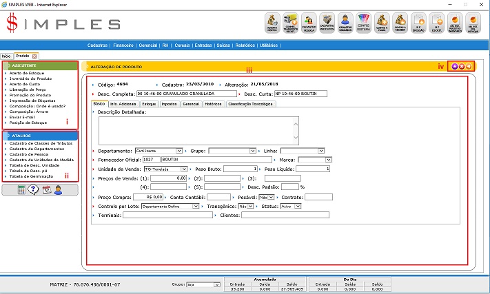 O cadastro de serviços apresenta três abas importantes, dentre elas estão Básico, Informações Adicionais, e Impostos. A seguir será explicado cada uma delas.