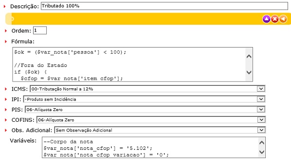 1. Atalhos: Permite de forma rápida entrar nos  cadastros de: Tributos do ICMS, Tributos do ISS, Tributos do IPI, Tributos do PIS, Tributos do COFINS e Obs. dos Tributos.