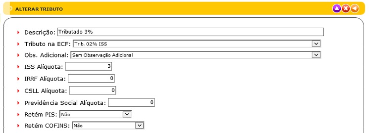 - Tributo na ECF: Tributo usado no Emissor de Cupom Fiscal.