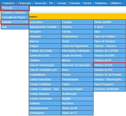 - Busca Avançada: Permite fazer uma busca avançada de Tributos do ISS com base em todos os campos da tabela.